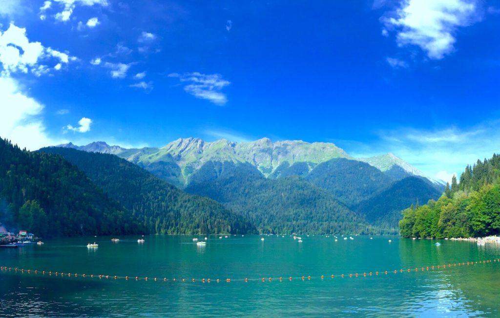 Маршрут пролегает через величественные каньоны, разделённые долинами рек и густыми лесными массивами. Окружающие пейзажи озера Рица настолько поражают воображение, что в памяти туристов останется масса неизгладимых впечатлений. Прекрасный водоём ледникового происхождение имеет вытянутую форму длиной в 2,5 километра.