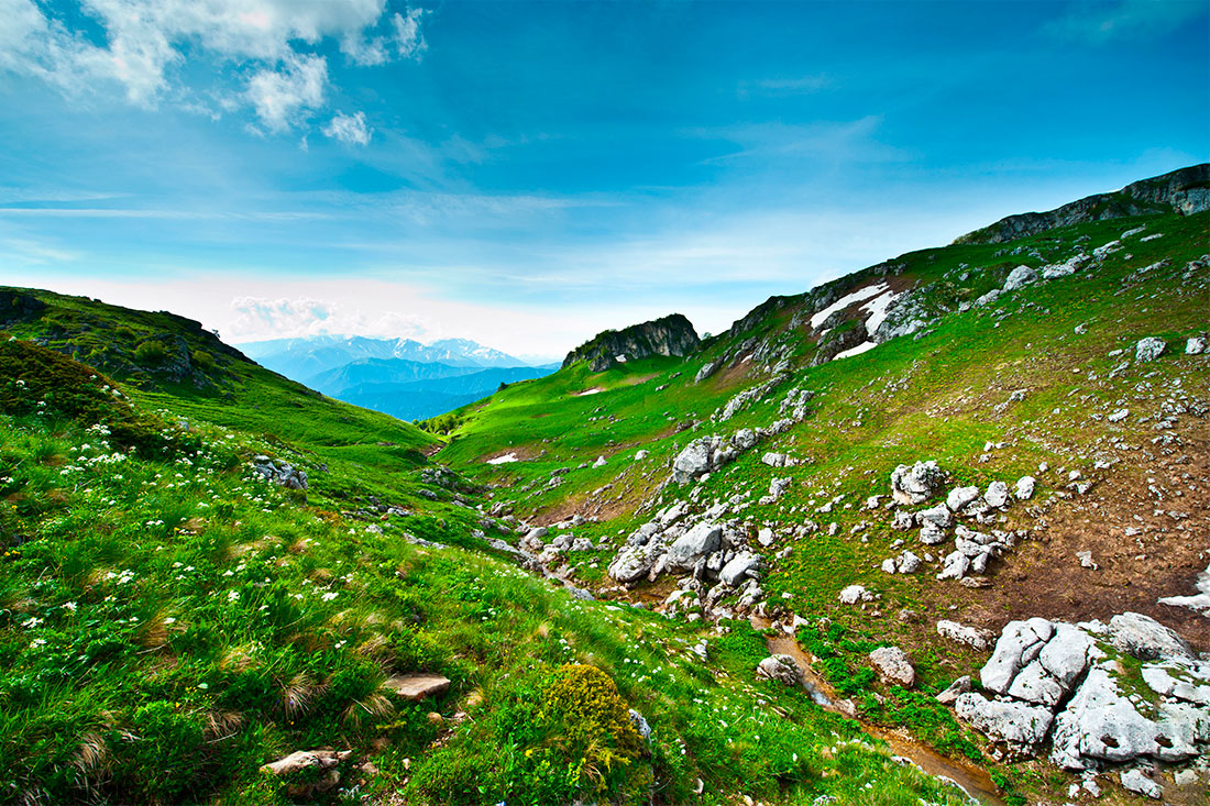 Кавказские рододендроны, крокусы, тимьян и можжевельник ничем не уступают истинно альпийским. Каждый путешественник найдет здесь что-то для себя – белоснежные ледники, бурные ручьи, леса в долинах рек, цветочные поляны, таинственные карстовые пещеры, горные лыжи зимой, скалолазание, пешие и конные маршруты летом…