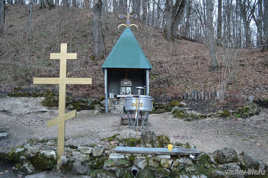 Вышеописанный монастырь находится у подножия горы Физиабго, а святой источник и купель Пантелеймона целителя расположен на самой горе. От территории Михайловской пустели сюда ведет хорошая тропа. Считается, что источник явился благодаря молитвам основателя монастыря Мартирия. Сам родник обложен камнем, около него установлен крест с иконой и оборудована купель. Многие паломники уверены в целебных свойствах местной воды.