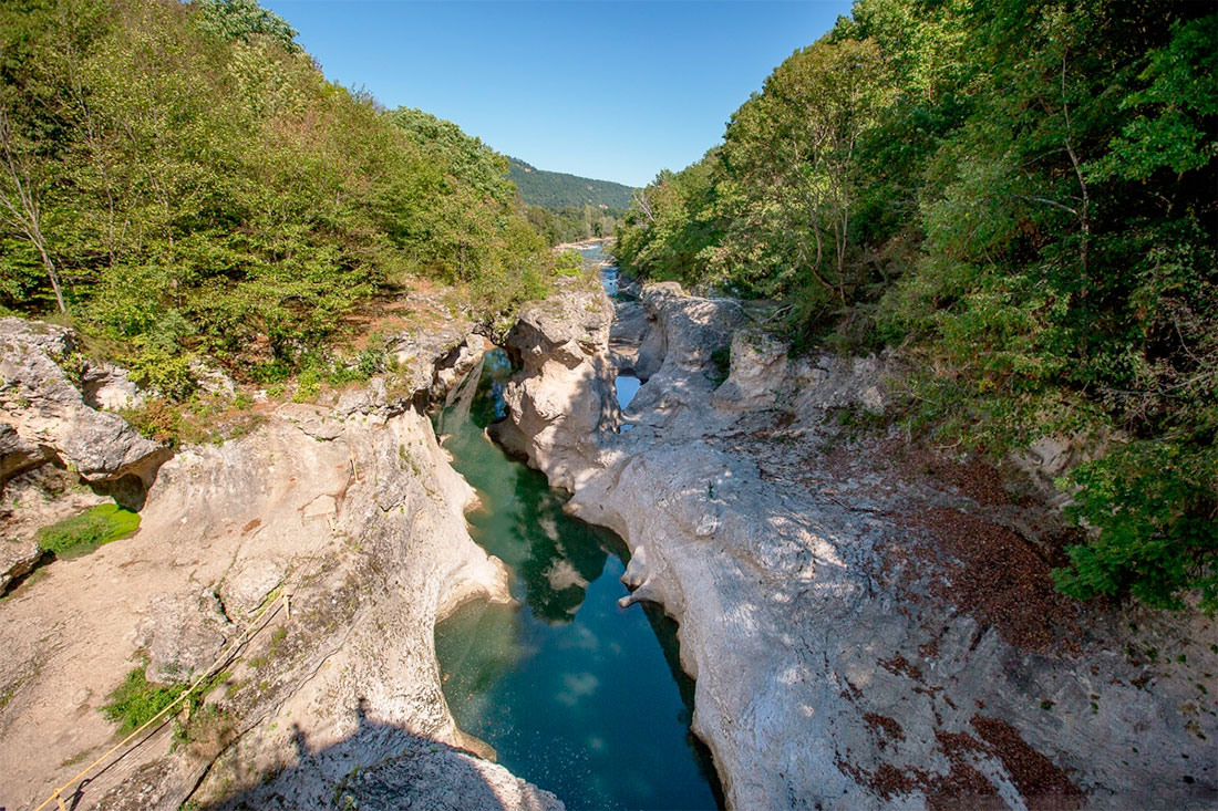 По дну каньона протекает река Белая. На более узких участках она пенится и бурлит, создавая водовороты и каскады — очень живописно. Ее берега покрывает уникальная растительность, тут и буки, и грабы, и рододендроны, и даже лианы. На многих отрезках к берегу реки можно спуститься, отдохнуть на уединенном пляже или погулять по девственному лесу. Еще одним плюсом каньона станет ценник — всю эту красоту можно осмотреть совершенно бесплатно.