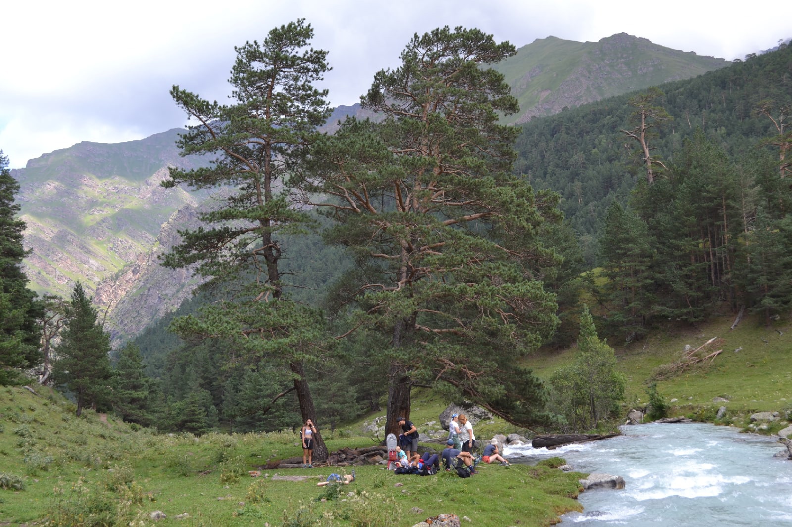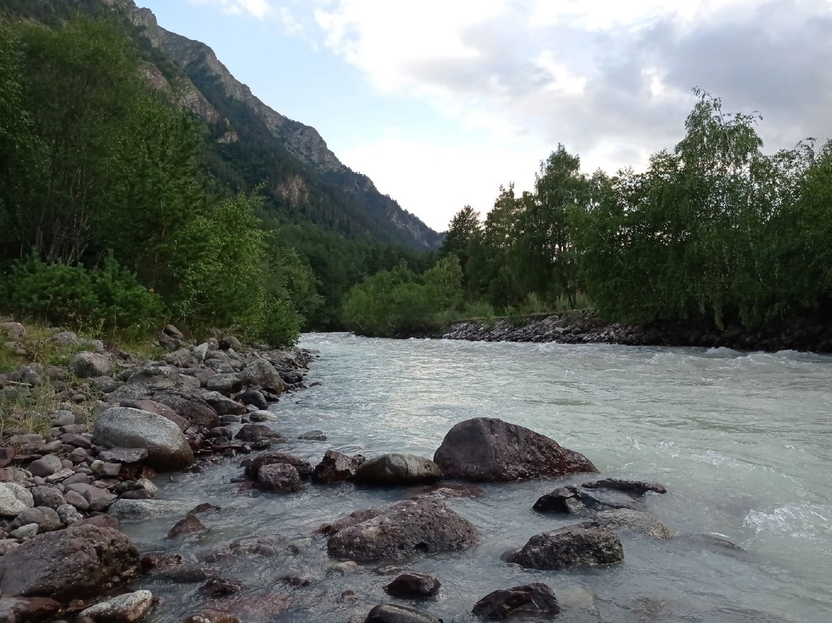 Сегодняшний день — это встреча, знакомство, загрузка, трансфер, заброска на УАЗе и заселение в домики. Наша задача в этот день – добраться до лагеря. Встречаемся мы в городе Невинномысске на площади перед ЖД вокзалом ориентировочно в 8:00 — 8:30 утра. Перед походом обязательно сообщим точное время встречи. Нам необходимо как можно раньше встретиться, чтобы успеть за короткий световой день добраться до лагеря и, по возможности, еще совершить небольшую акклиматизационную прогулку. После небольшого вводного инструктажа загружаемся в заранее заказанный автобус и едем в Карачаево-Черкессию. Путь неблизкий, займёт несколько часов, поэтому по желанию и согласованию со всей группой заедем в кафе и, пообедав вкуснейшими осетинскими пирогами, продолжим свой путь в аул Хасаутасаут Греческий. Здесь мы перезагружаем вещи в авто повышенной проходимости (УАЗ) и далее уже по горной дороге ещё около полутора-двух часов едем по ущелью реки Аксаут в заброшенный аул Красный Карачай. Аул нежилой, здесь нет ни электричества, ни связи, ни интернета, ни жителей, ни магазинов. Есть только горы, сосны, реки и чистый воздух. Связи не будет ближайшие 8 дней, поэтому уже в Хасауте Греческом, отзвонившись родным и близким, можете переключать свои телефоны в режим «полета» для экономии заряда батареи. По приезде в Красный Карачай в случае быстрого заселения в домики у нас останется время на небольшую (5-6 км) прогулку по долине реки Аксаут. Известно, что лучший способ быстрой акклиматизации — это движение. Вернемся в лагерь мы уже либо на закате, либо в темноте, но не поздно, и у нас останется время на отдых, ужин, знакомство и инструкции.