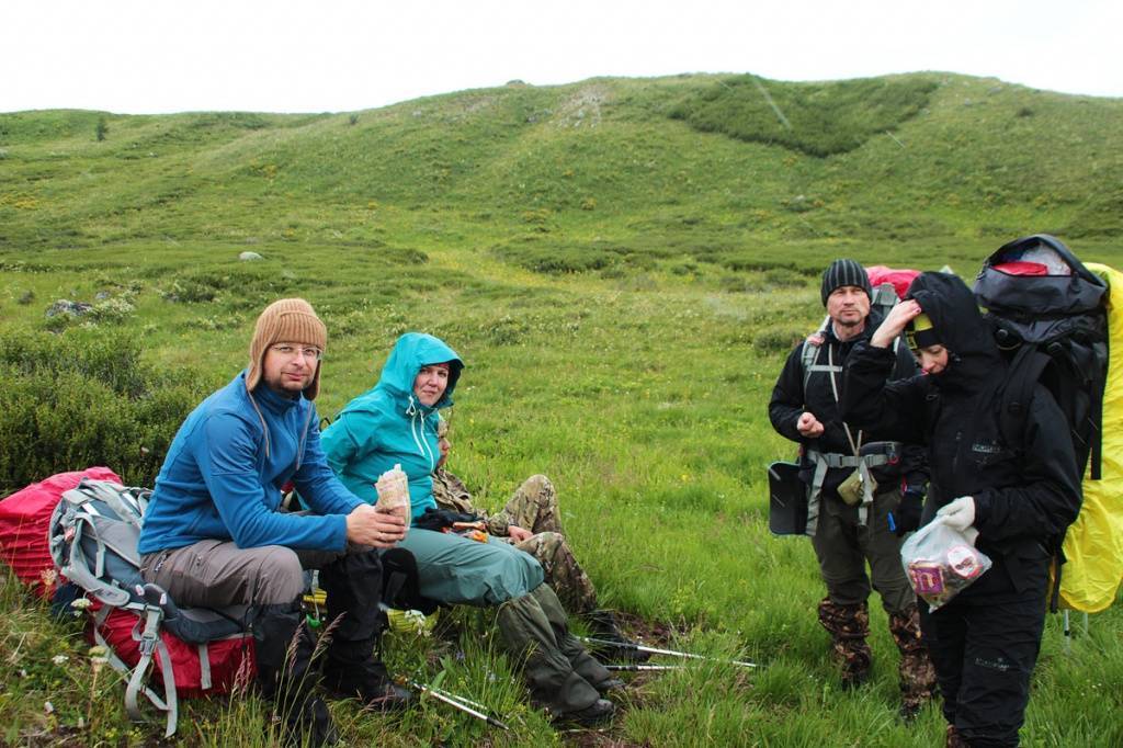 - Палатки и снаряжение несем на себе, провизию распределяем по рюкзакам всех участников похода. Есть возможность за дополнительную плату (около 2500 руб с человека) примерно 2/3 продуктов забросить на середину маршрута на лошадях