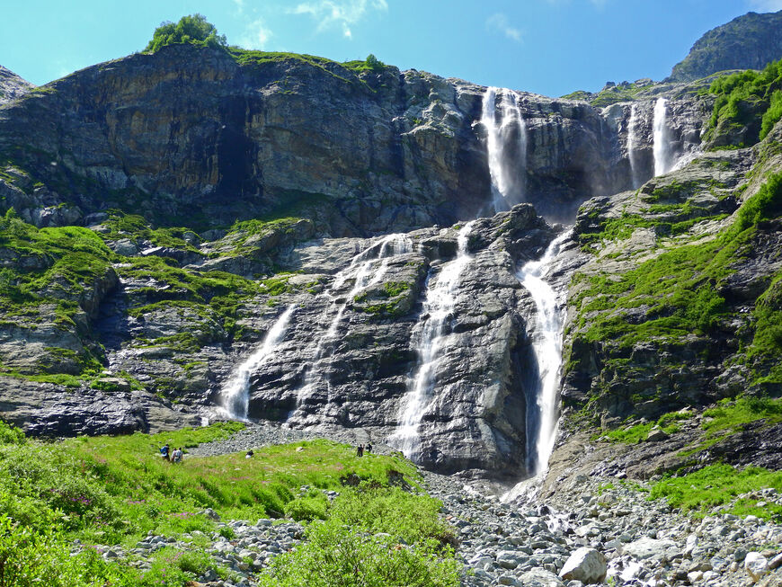 Мощные потоки воды, обрушивающиеся со склонов горы София, привлекают к себе сотни туристов. Высота горы – 3636 метра. Чаще всего путешественники совмещают посещение Софийских водопадов и Софийских озер, расположенных в 15 км от поселка Архыз. Дорога к водопадам проходит вдоль хребта Чагет-Чат по живописному Софийскому ущелью. По пути к водопадам стоит заглянуть на Ледниковую ферму, где обитают буйволы и карачаевские лошади.
