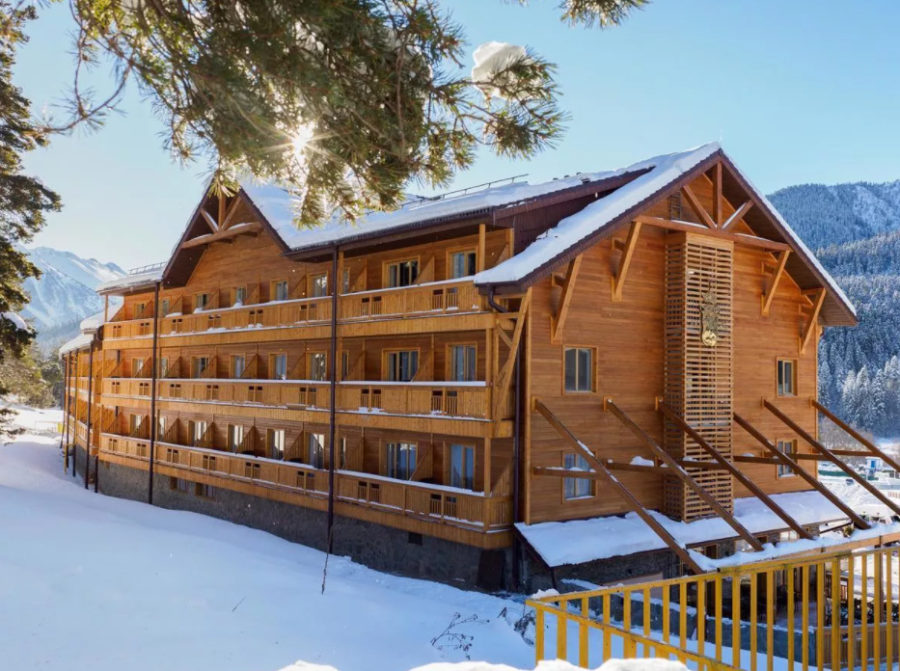 - А вот остановиться большой компанией можно на Банковской улице в одном из коттеджей комплекса Kulrashe или в деревянных домиках турбазы Алан. Стоит заметить, что в зимний сезон все крупные гостиницы в Архызе предоставляют трансфер до канатной дороги.