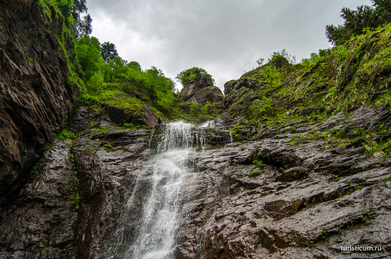 - Водопад на реке Белой — популярная экскурсия в ущелье реки Псыш. Почти до самого водопада можно доехать на внедорожнике, пройти пешком останется всего 300 метров. Но есть вариант и долгой прогулки до водопада с Софийской поляны — хороший маршрут на целый день.