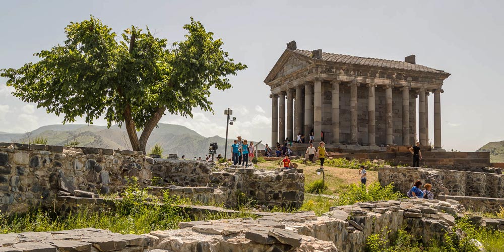 Гарни. Помимо большого количества древних христианских памятников архитектуры, не менее богата Армения и на древние античные строения. Самым ярким из них, пожалуй, можно назвать языческий храм Гарни, напоминающий своим видом классические образцы античной греческой архитектуры. Возведение храма началось во II веке до нашей эры и продолжалось в античные времена. Перестройка храма проводилась и в период раннего средневековья. Сооружение благополучно достояло до 1679 года, а затем было разрушено сильным землетрясениям. Благодаря наличию исторических документов храм был заново реконструирован в Советское время.