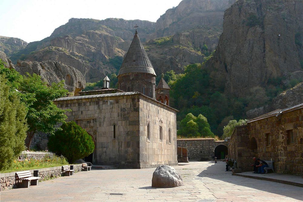 Гегард — уникальный средневековый монастырь, расположенный в 40 км от Еревана в ущелье реки Гохт. Включён в список объектов Всемирного наследия. Монастырь был основан в 4 веке. От той древней структуры ничего не осталось. Большая часть сохранившихся сооружений относится к 12 — 13 столетию. Главной особенностью монастыря является пещерные часовни. Некоторые из них полностью вырезаны в скале, другие представляют собой не что иное, как пещеры. Также здесь можно увидеть другие постройки с архитектурно сложными стеновыми секциями и комнатами глубоко внутри скального основания.