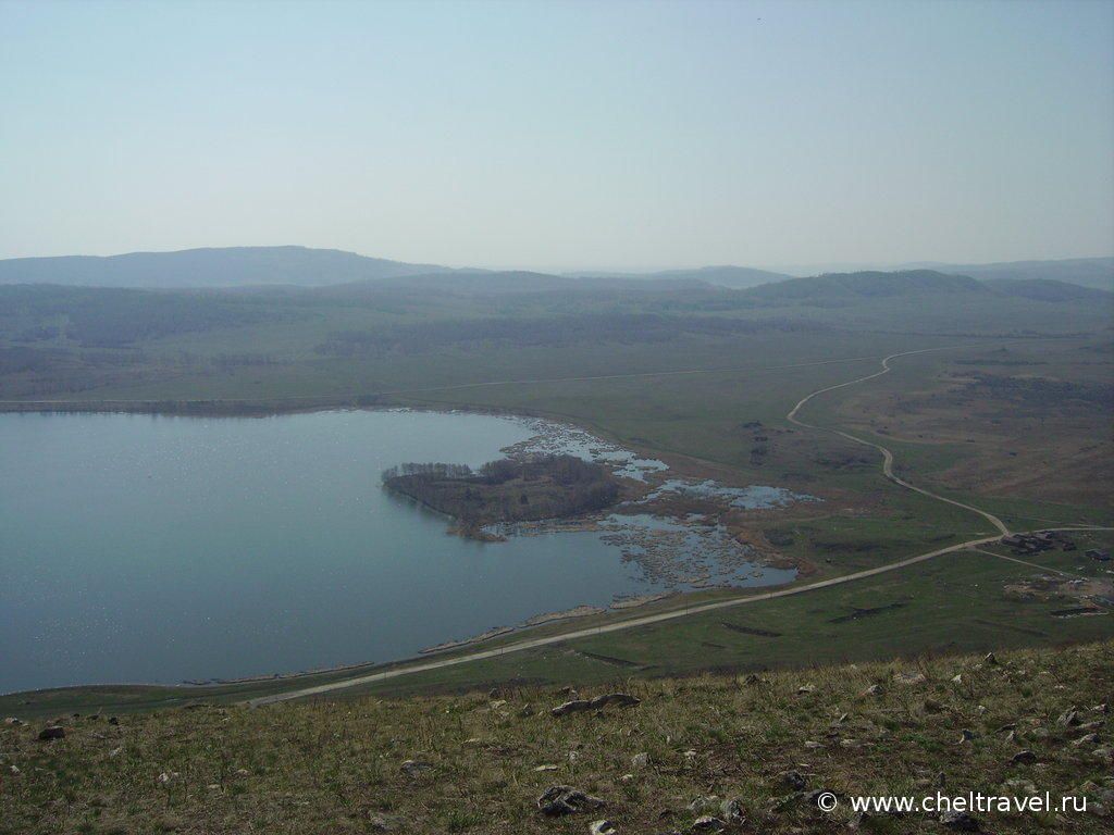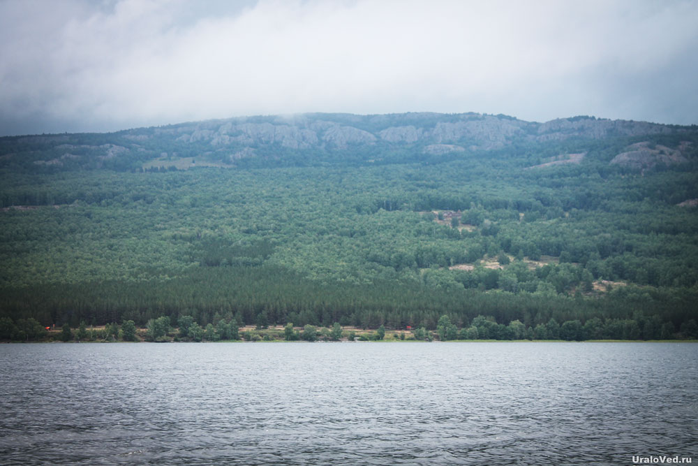 С разных мест с горы открываются красивейшие места на озеро и дали Башкирии.
