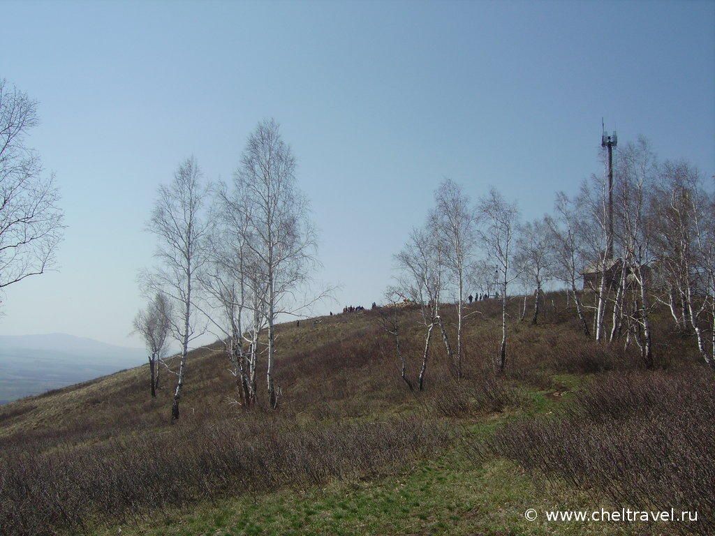 Дорога на вершину горы начинается у её северо-восточного подножия. Она проходит по просеке, среди берёзового леса. Подъём очень крутой.