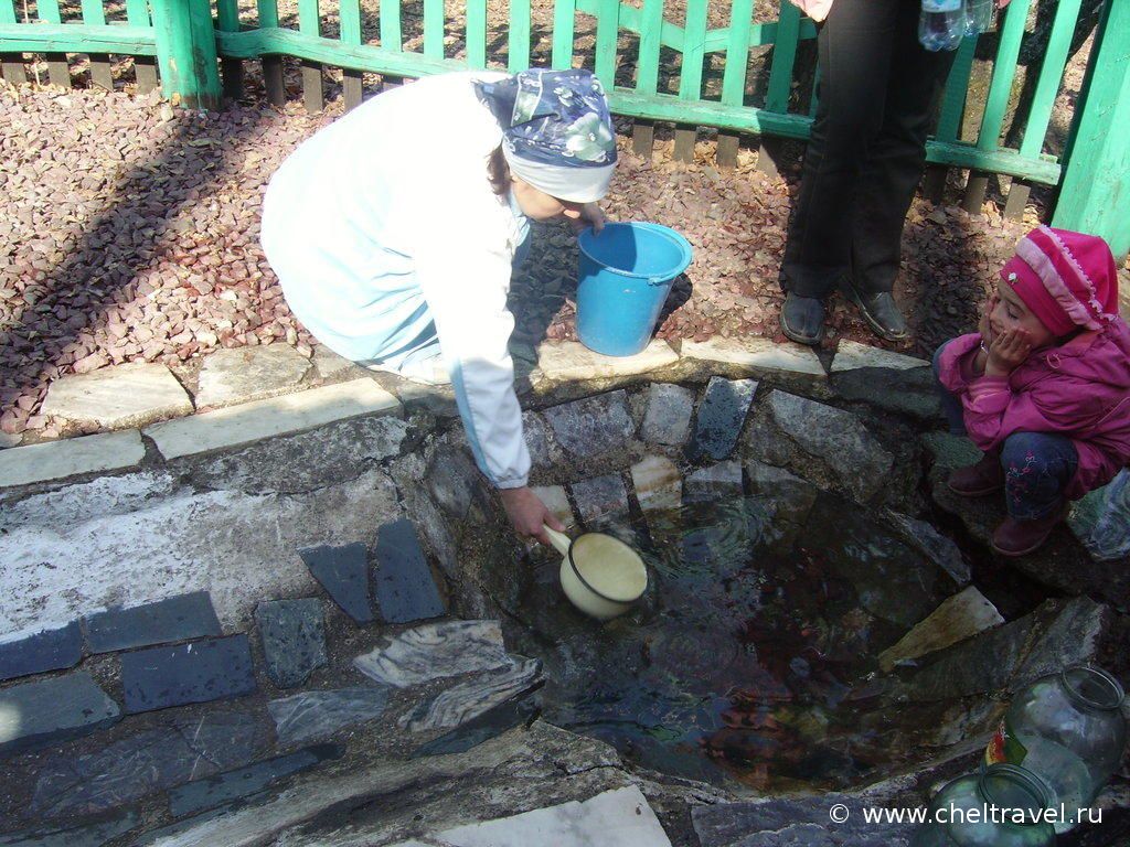 Родник бьет весной с момента таяния снега всего около 20 дней. Паломники запасаются водой на весь год.