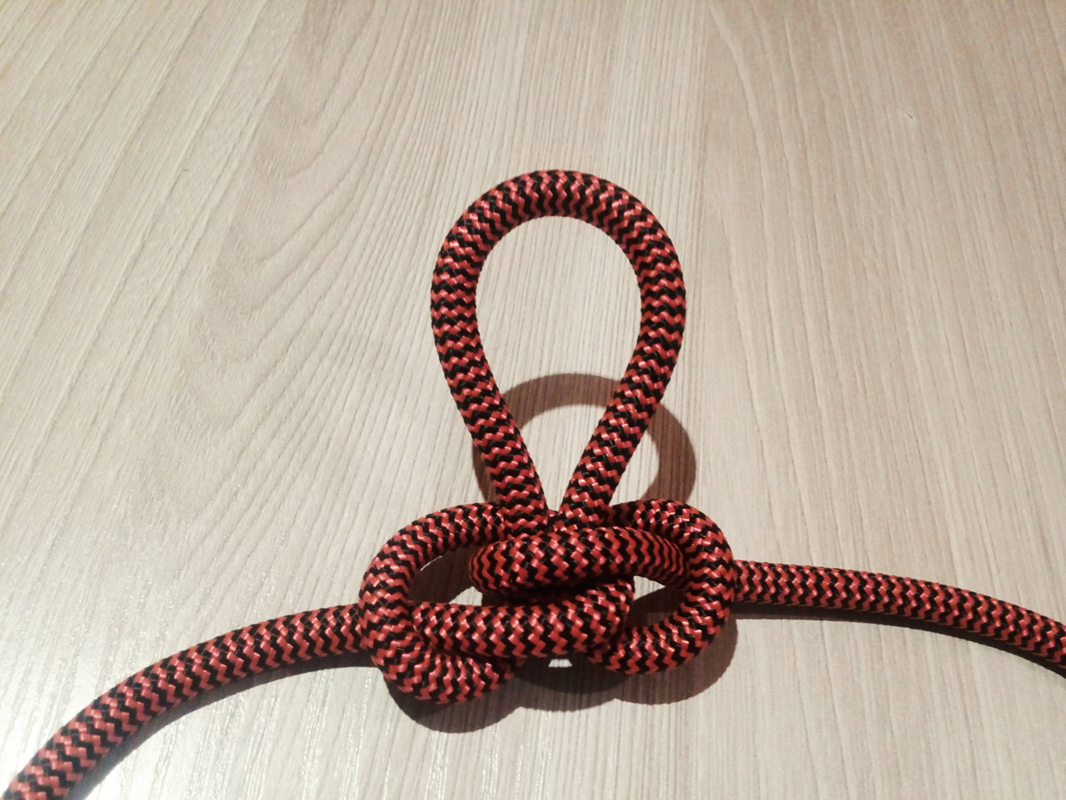 Используется для получения надежной петли, а также для закрепления веревки на рельефе. Она складывается вдвое и на конце завязывается узел, напоминающий цифру восемь.