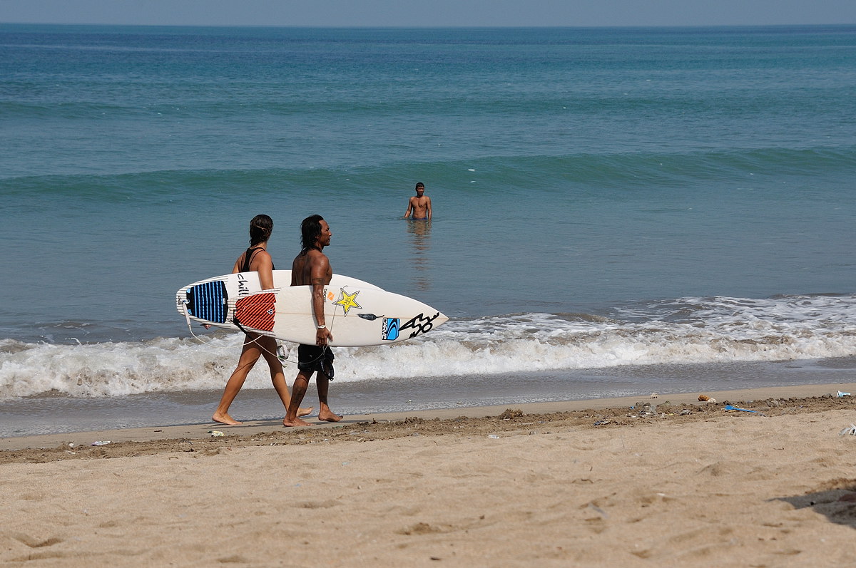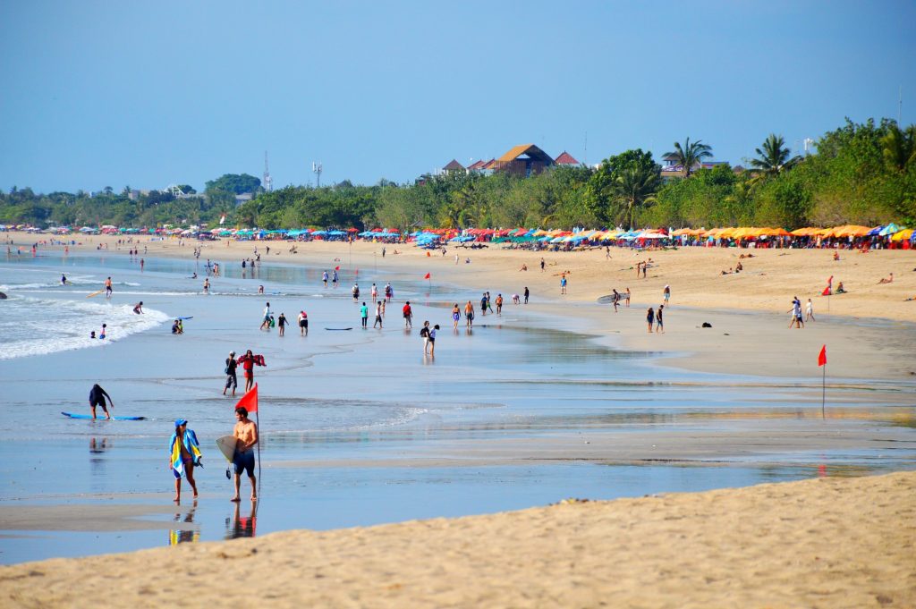 Кута — самый популярный, самый старый, самый близкий к аэропорту, самый тусовочный и самый длинный пляж на Бали. Он терпимо грязный, мусор в основном органический – то что выносит море, хотя пластика тоже хватает. Идеальное место для тех, кто приехал на Бали потусить, поучиться серфингу и показать свой новый купальник другу. Одно из тех мест, где людей с досками для серфинга больше на берегу чем в море. Количество торговцев иногда напоминает одесский Привоз. Очень много туристов.