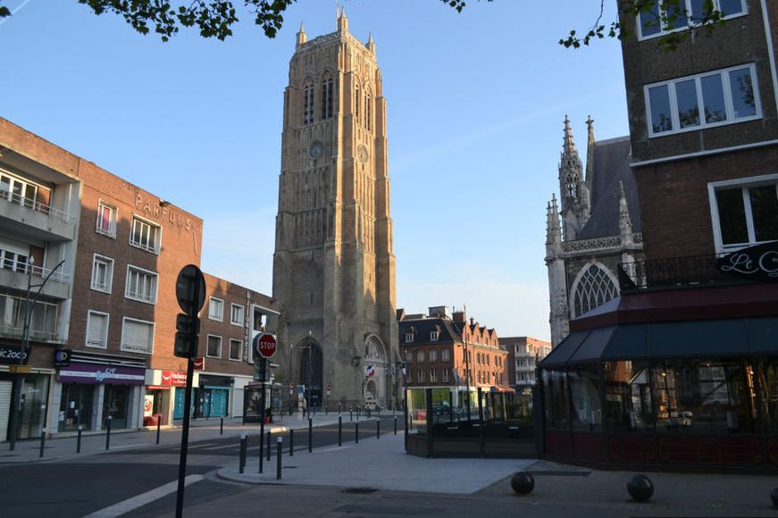 Колокольня Св. Элигия, Дюнкерк. Основанная в середине XV века колокольня после возгорания в 1558 году оказалась отделена от храма. В настоящее время между этими двумя строениями проходит дорога.