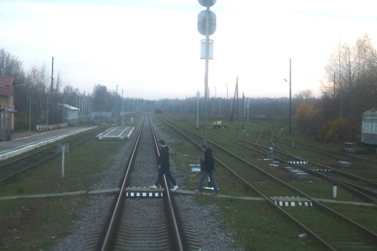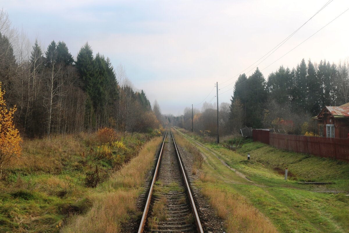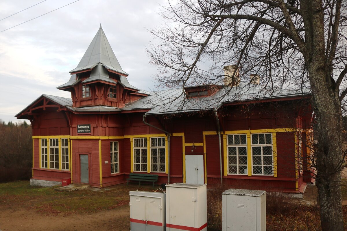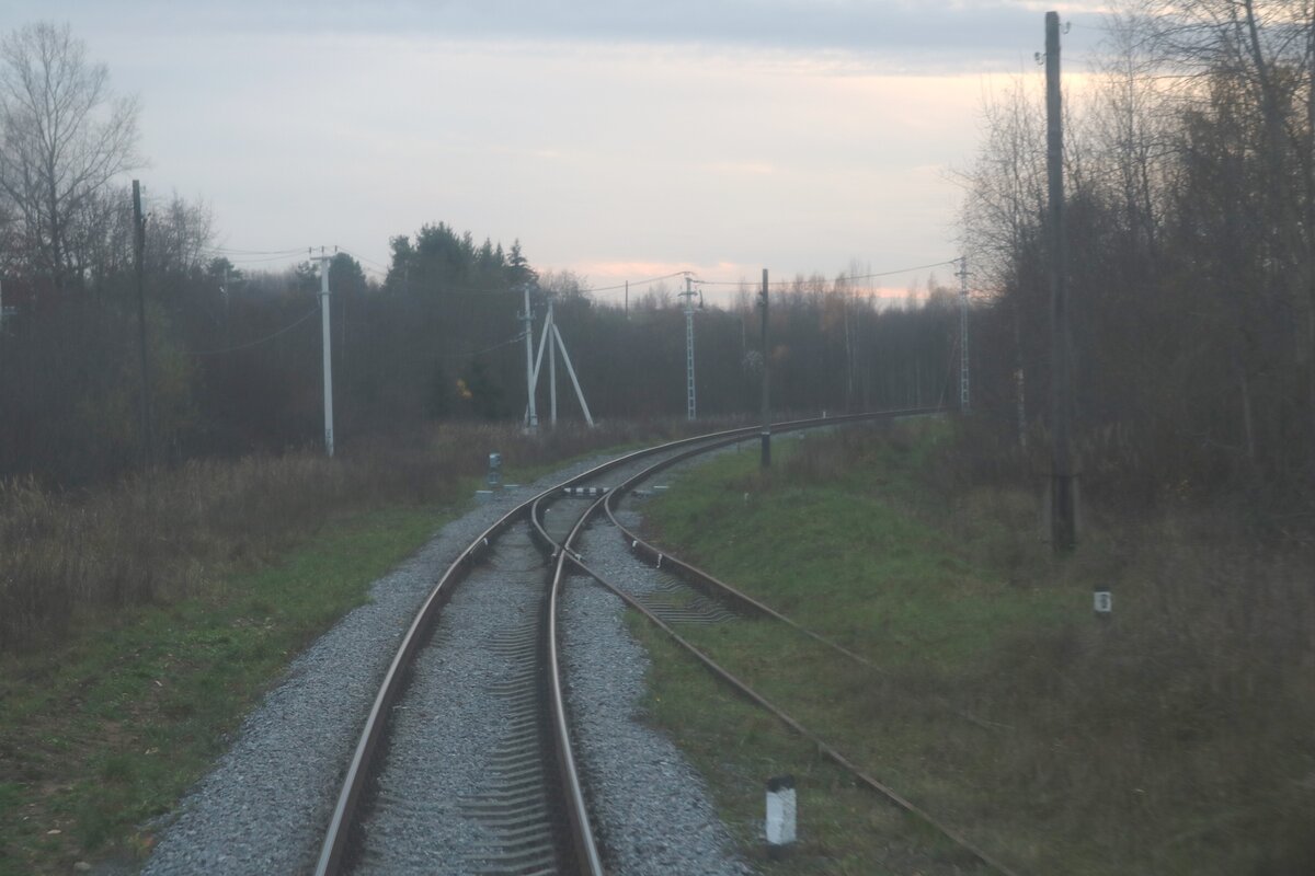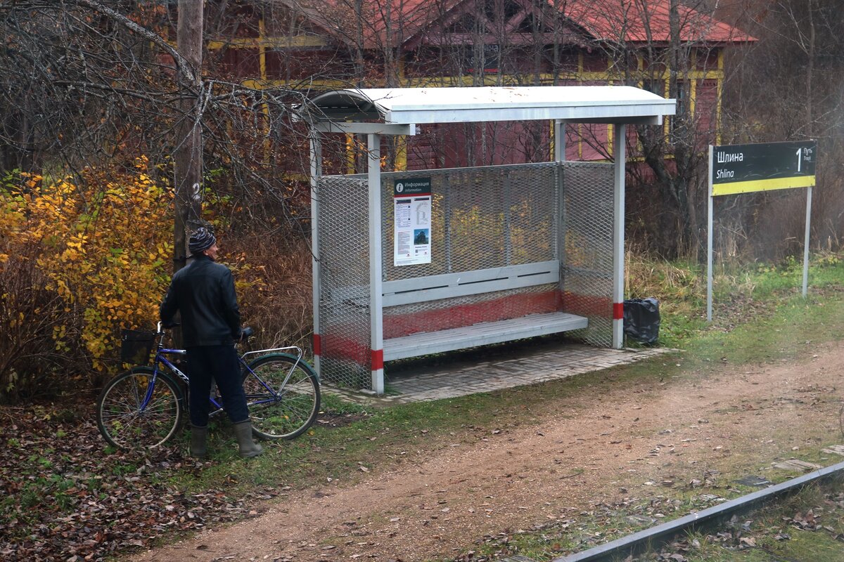 Поезд, состоящий из тепловоза и двух вагонов, отправился точно по расписанию в 9:25 и, сделав две остановки, в 10:08 прибыл на станцию Куженкино, где была запланирована получасовая стоянка. Пока ехали, начальник поезда рассказал о ретро-проекте, истории БПЖД и извинился за отсутствие паровоза. От него я узнал, что дорогу строили в самом начале 20 века на французские деньги как часть магистрали Бологое – Седлец (Польша) для ведения военных действий Россией против Германии и Австро-Венгрии.