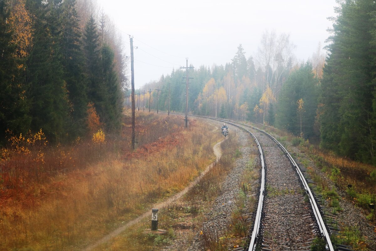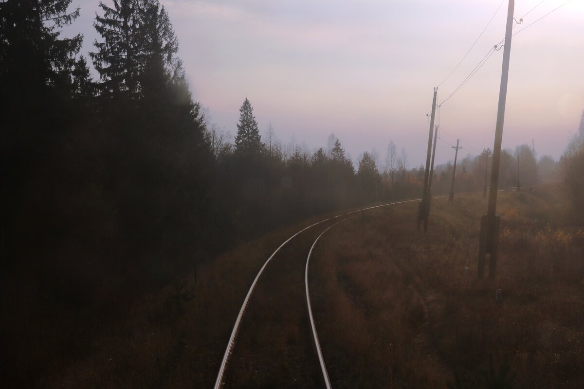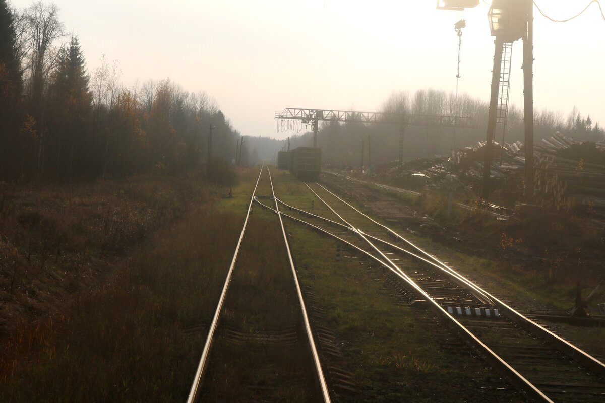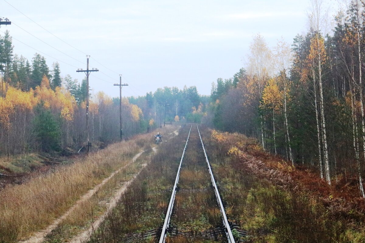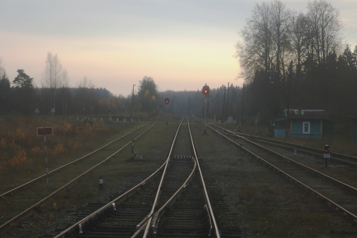 Сразу после Куженкино поезд пошел ощутимо медленнее, колеса стали издавать характерное постукивание. Кончился «бархатный путь», сказал кто-то из попутчиков. Так называют бесстыковую систему укладки рельс. Я сперва не поверил, что здесь в глухих лесах, где ходит пара поездов в день, могут быть новые пути. Но мне объяснили, что сразу за Куженкино в сторону уходит загадочная линия. Если смотреть по карте, то она обрывается просто где-то в лесу.