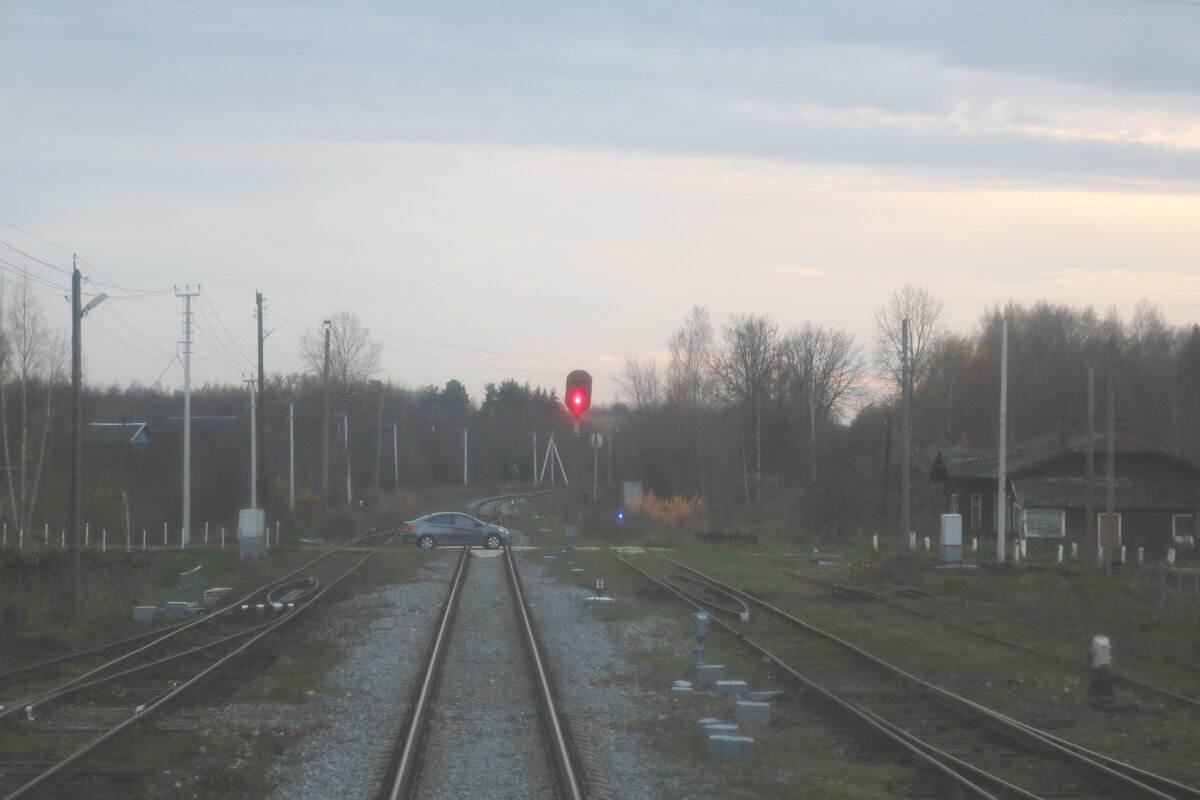 Пока мы ехали, Алексей уже выяснил, что паровоз починили, и что он идет следом, чтобы порадовать-таки тех, кто запланировал на сегодня обратное путешествие из Осташкова в Бологое. У нас планов ехать назад не было. Но мне было обидно, что я привез родственников в такую даль ради паровоза, а он не пришел. Поэтому решили все же прокатиться полчаса в обратную сторону до остановки Черный дор, а оттуда вернуться в Осташков на машине.