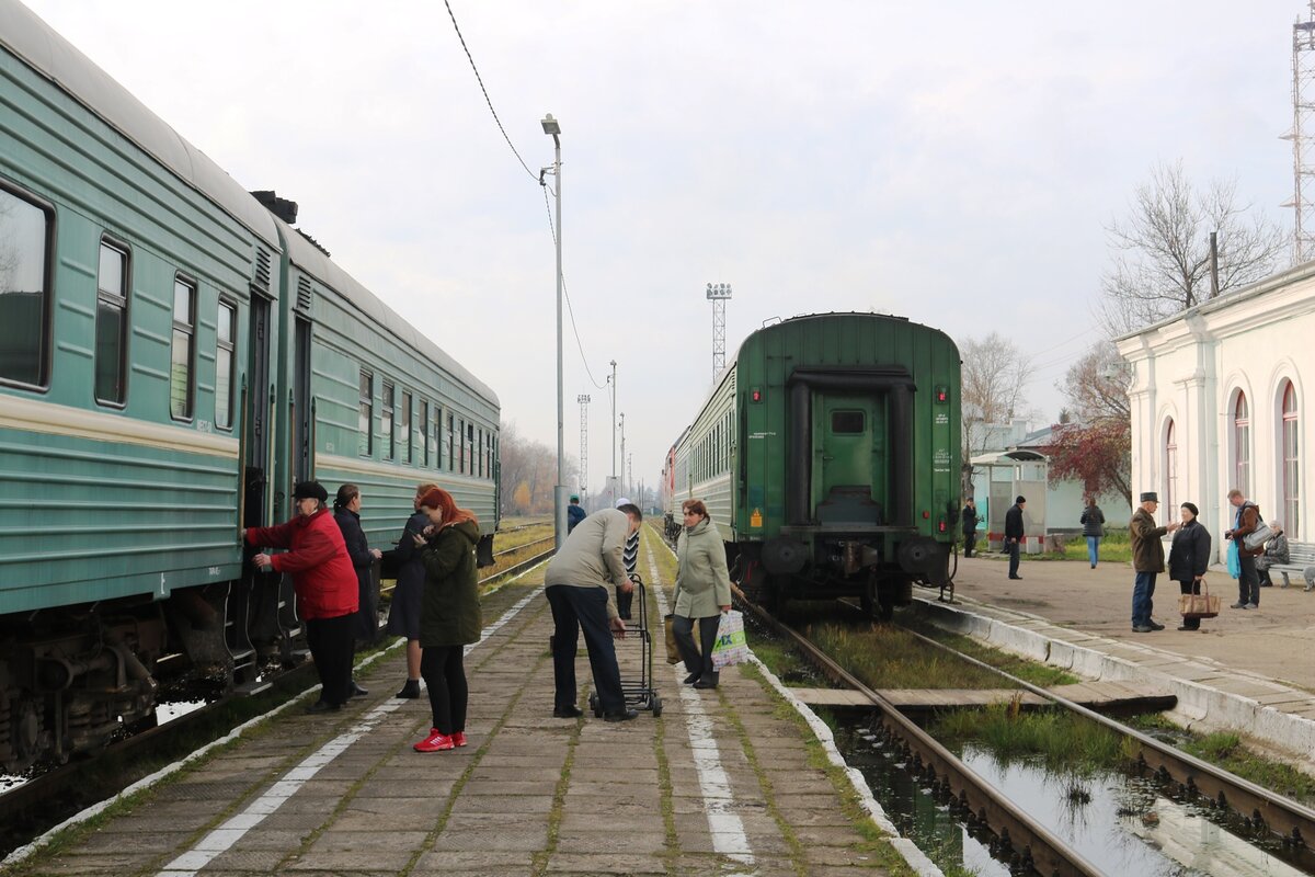 На станции Куженкино из поезда вышло, по моим оценкам, человек 50. Стало ясно, сколько людей приехали в этот день сюда ради ретро-поезда. Честно говоря, я не думал, что будет столько народа. Все же уже октябрь.