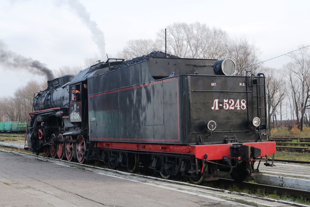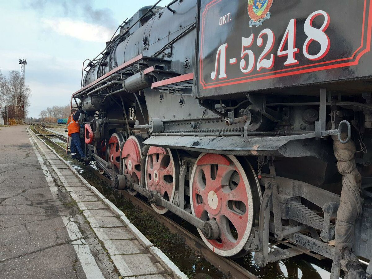 Мы свои два часа до внезапно наметившейся обратной поездки потратили на заселение в арендованный дом. В 14:50 были уже на вокзале. Но поезд опять стоял под тепловозом… Я заволновался, но вдали показался паровоз серии Л, построенный в 1951 году. Тепловоз надо было вернуть в Бологое, поэтому решили, что было бы глупо, если бы он ехал сам, вот его и подцепили, чтобы перегнать под паровозной тягой.