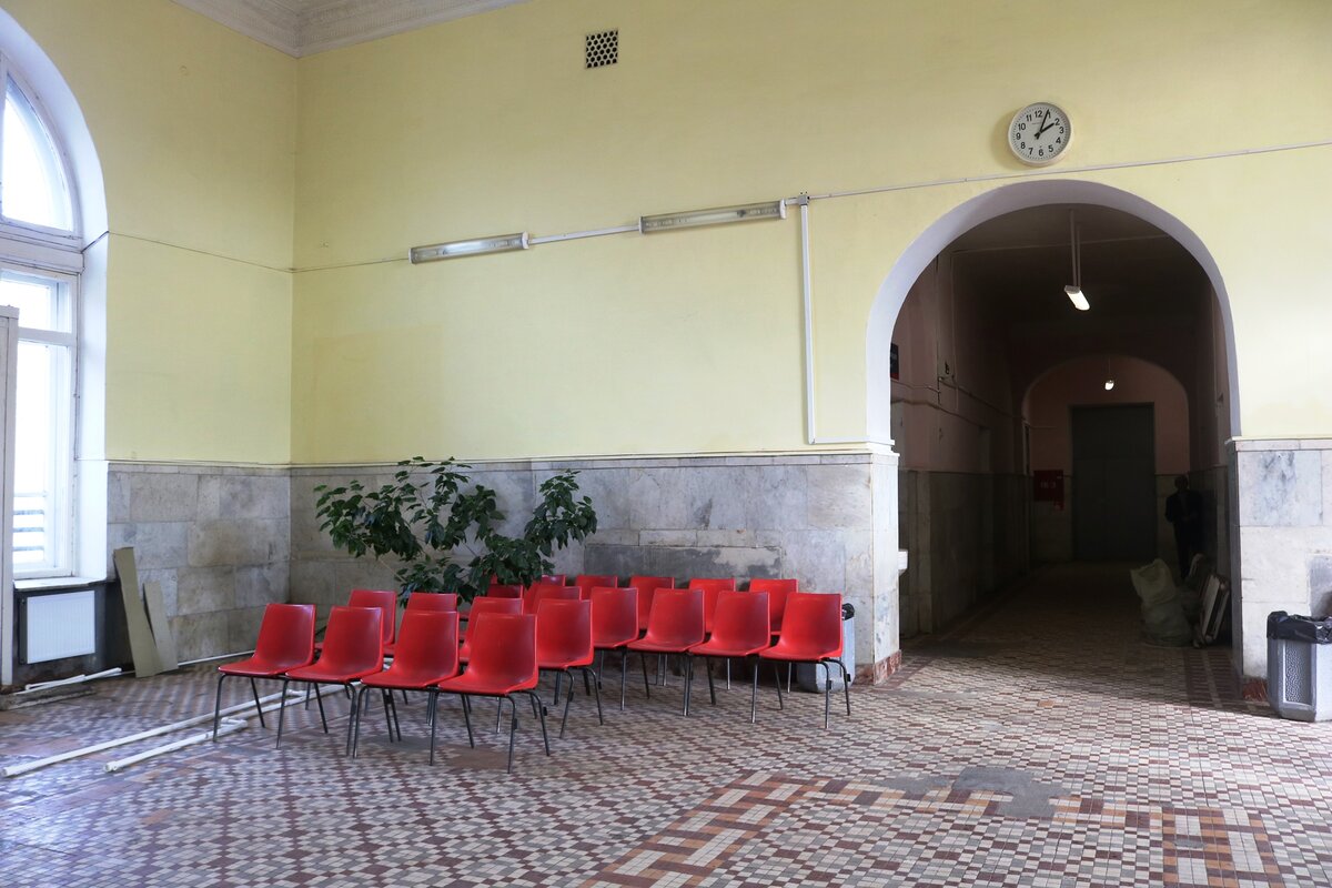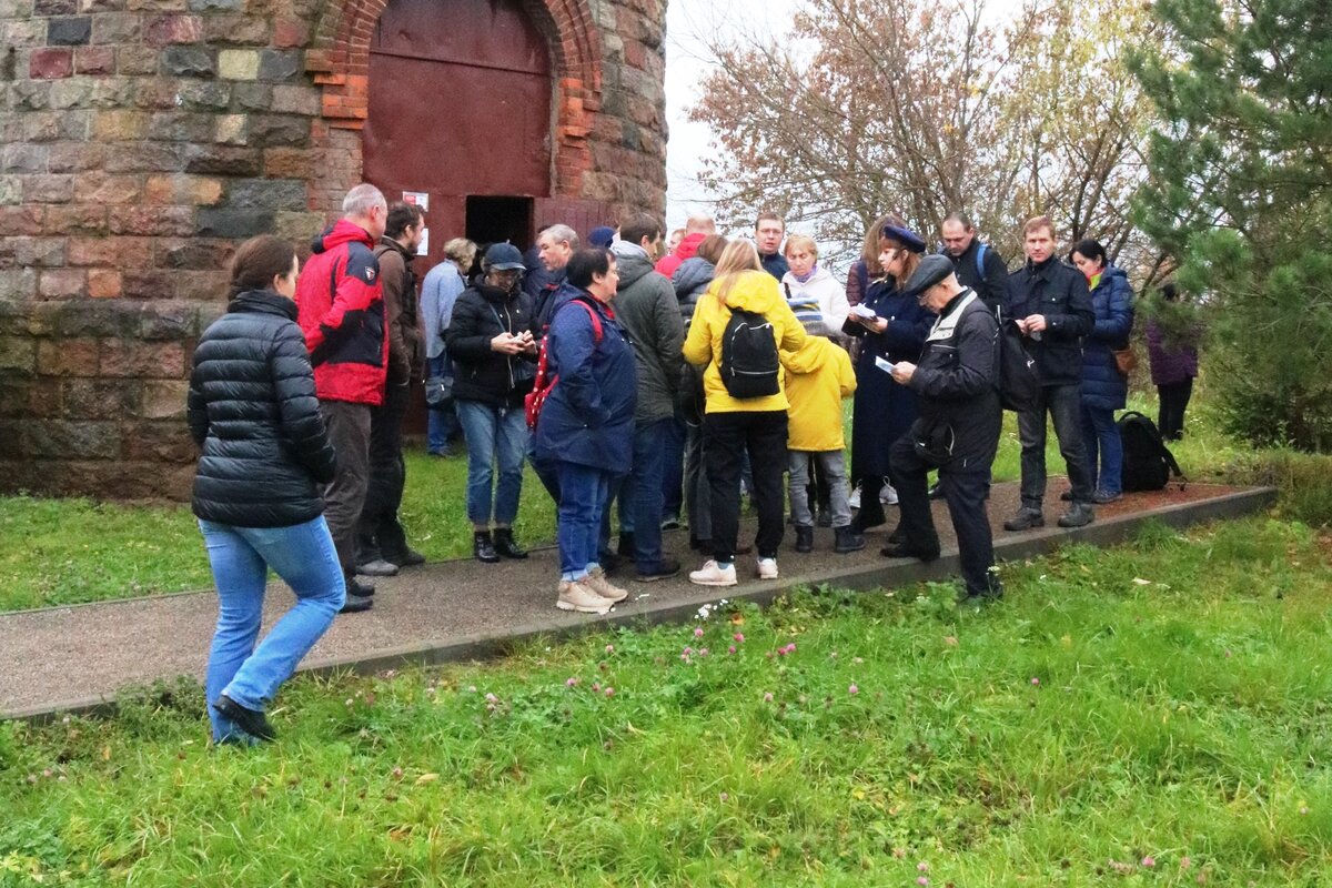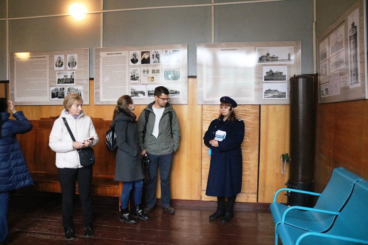 Кто пользовался в этот день поездом для обычной пригородной поездки, остались сидеть по вагонам. Экскурсия вышла довольно сумбурной. За полчаса не просто показать группе в 50 человек весь станционный комплекс. Нас пустили посмотреть здание вокзала четвертого класса, где сохранились зал ожидания со старинными лавками и необычным устройством – колонной для питья, багажное помещение, комната дежурного по станции… Мы сходили в отдельно стоящий керосиновый погреб, водонапорную башню, а детям разрешили перевести стрелку.