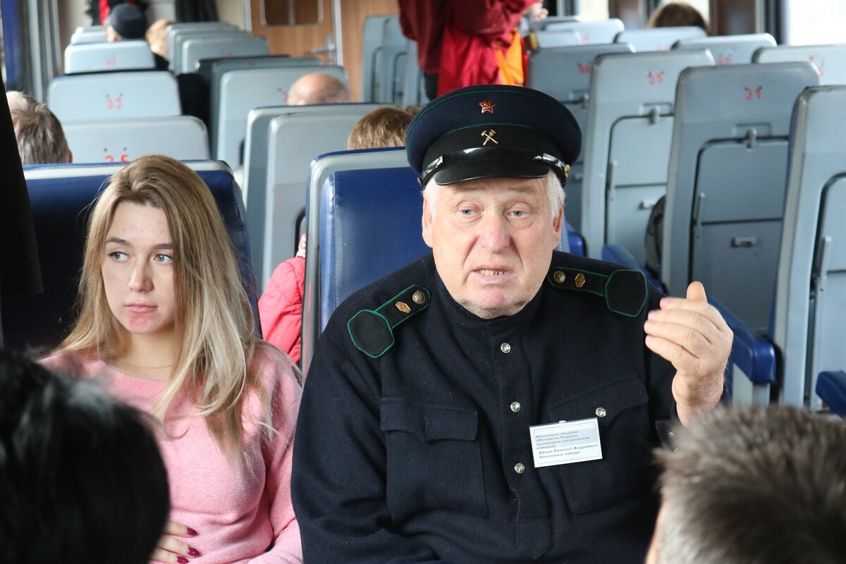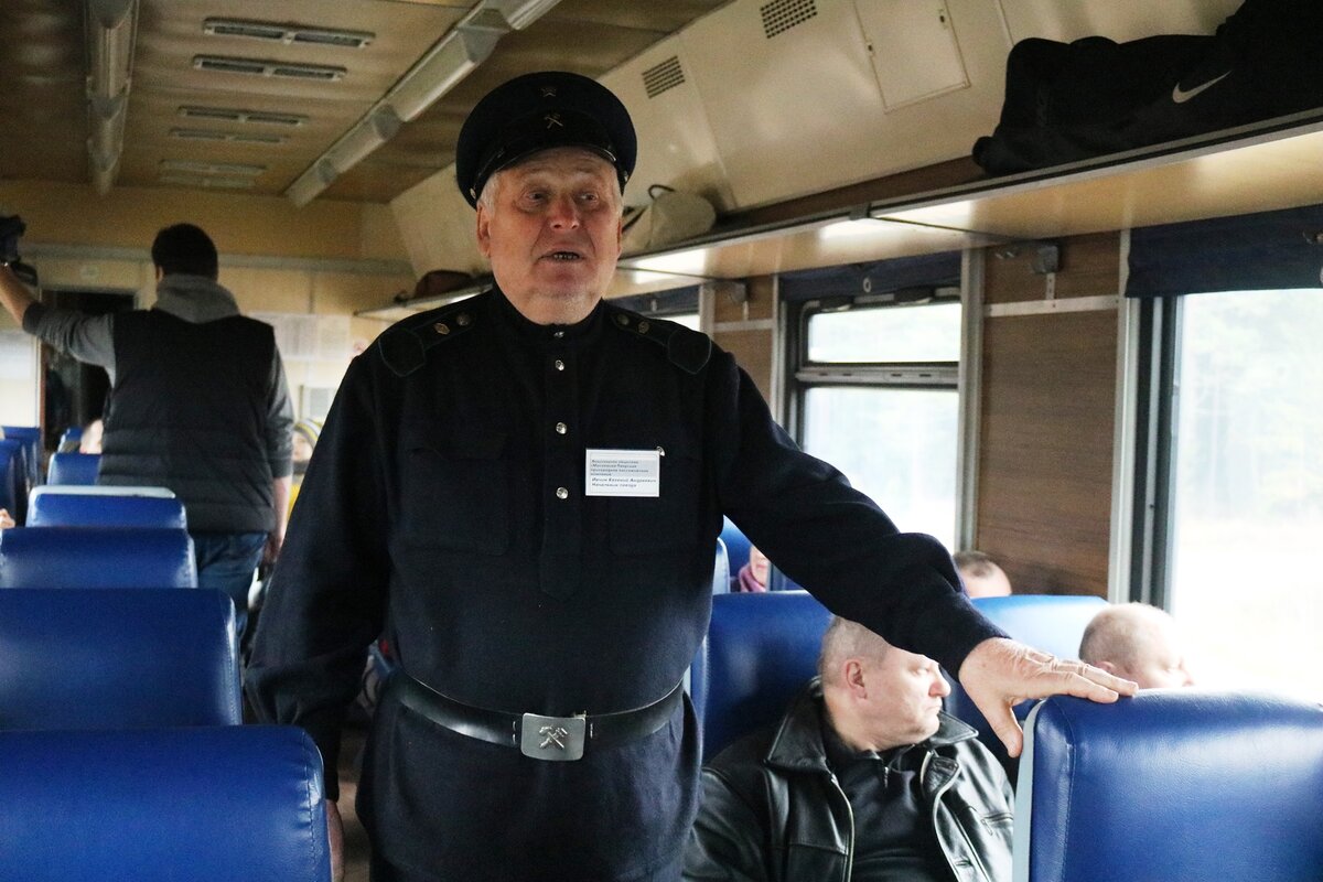 На посадке нас встречали проводницы и начальник поезда – харизматичный мужчина лет семидесяти – одетые по форме 1960-х годов. Заняв места во втором вагоне и рассадив родственников, я пошел фотографировать подцепку паровоза… Но вместо него прошел обычный тепловоз ТЭП-70. Куда делся паровоз, никто не знал. Проводники и начальник поезда разводили руками: за год такое первый раз. В моем вагоне, помимо множества индивидуальных туристов, ехала туристическая группа человек на 20. Их руководитель и сами экскурсанты, кажется, расстроились. Они тоже приехали сюда ради него.