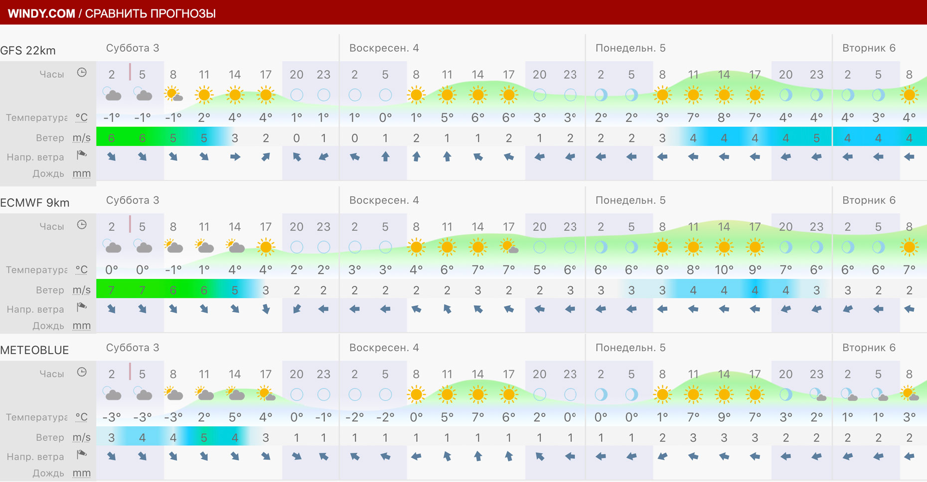 Прогноз погоды за день до похода