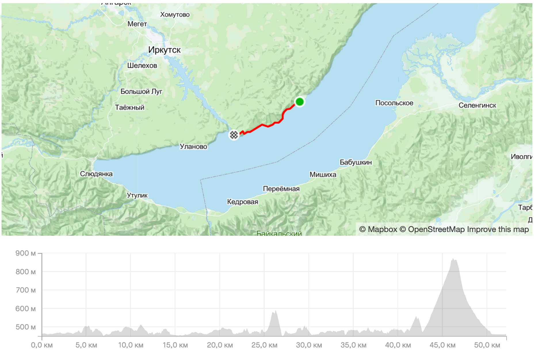 Тропа на карте Байкала и вертикальный профиль маршрута