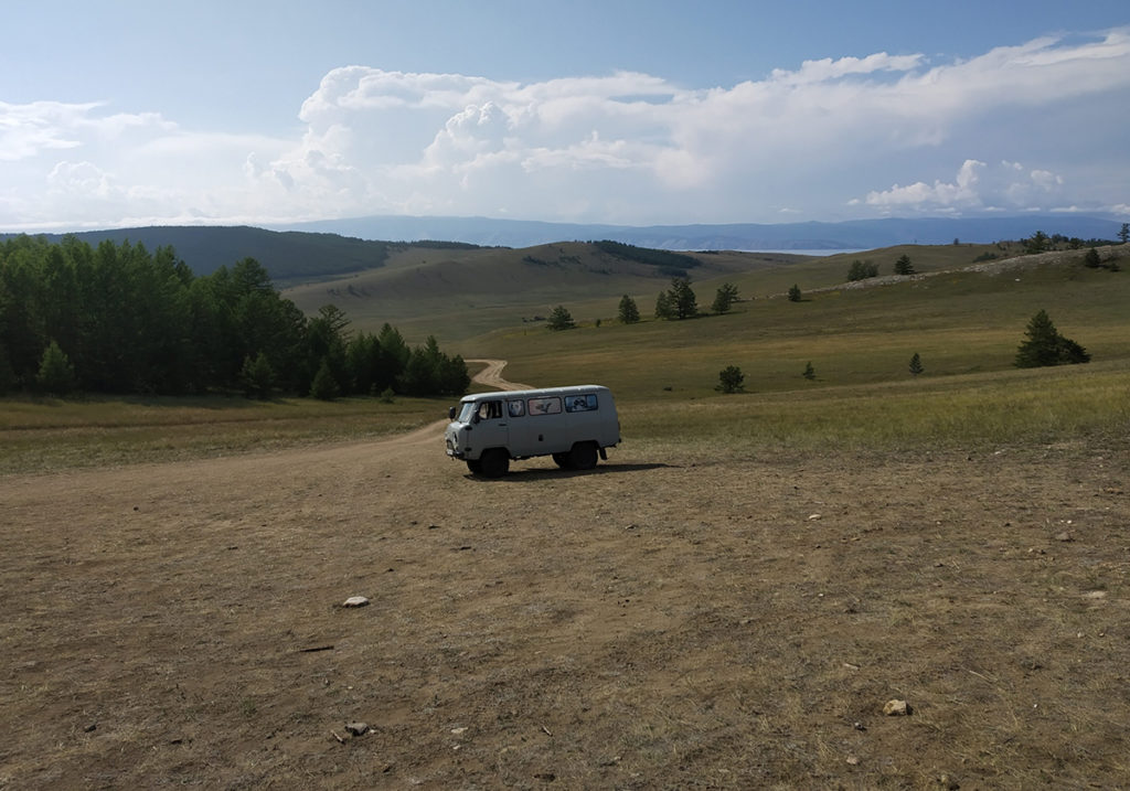 Третий вариант — пешком или автостопом. От Хужира до Хобоя около 25 км, часть из которых — дорога по однообразной степи, напоминающей старую заставку Windows.
