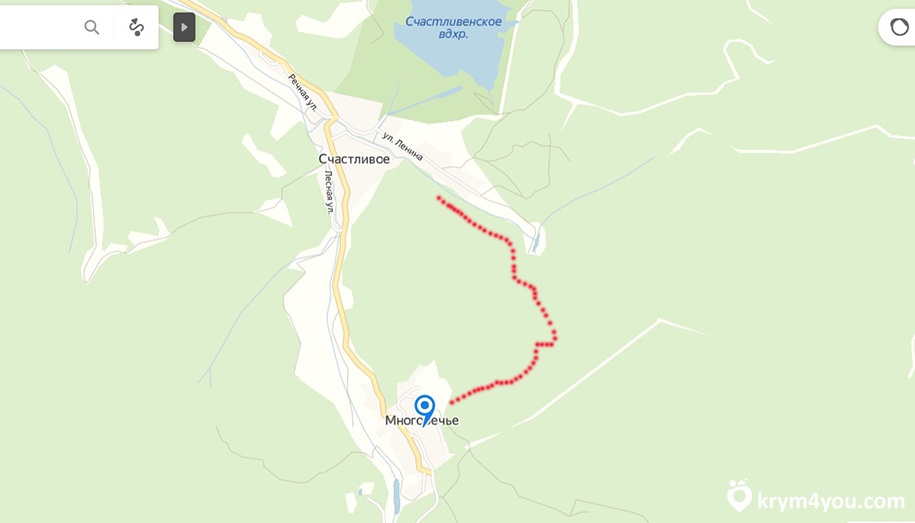 Добраться до Малого каньона Крыма проще всего по дороге, ведущей от Бахчисарая до Ялты, через гору Ай-Петри. Отъехав от Бахчисарая на несколько десятков километров, необходимо найти развилку, уводящую с главной дороги в сторону поселка Танковое. Дальше – все время по главной дороге до поселка Ароматное. В Ароматном сворачивайте с главной дороги в сторону поселка Плотинное и движетесь по главной дороге. Первым будет поселок Счастливое, вторым Многоречье. Откуда начинать маршрут – разницы особо нет, я привык начинать с поселка Многоречье, но это скорее привычка, нежели рекомендация. Если начинаете прогулку с поселка Счастливое, то с улицы Ленина. Доезжаете до ее окончания (просто заканчивается дорога), паркуете машину и вот Вы уже на маршруте. Если начало Вашего маршрута начинается в поселке Многоречье, то машину можно оставить на кольце (тоже конец дороги) или на улице Сосновая, проще на кольце, вот Вы и у начала тропы.