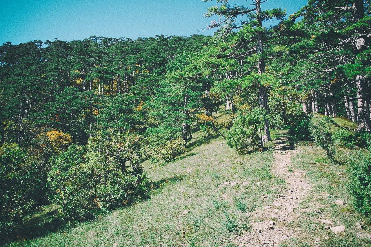 Тропа в основном ведёт по центру хребта, без серпантинов и ответвлений. Время от времени с разных сторон проглядывают горные склоны ялтинской и ай-петринской яйлы: