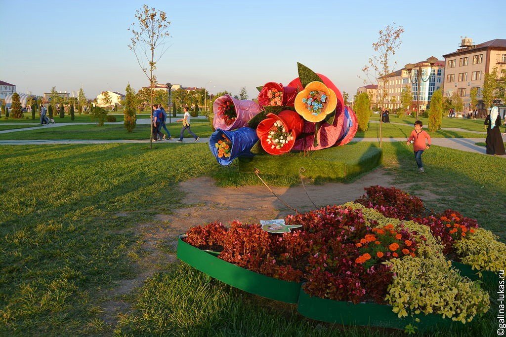 Начинается прогулка у новой локации — Цветочного парка. Он появился в Грозном несколько лет назад, но уже стал одной из визиток столицы — сделать яркие фото сюда приезжают гости со всех уголков России. Почти 5 гектаров площади, около 500 металлических конструкций, сотни тысяч цветов и кустов — по аллеям парка приятно прогуляться в любое время суток.