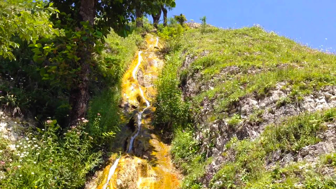 Горный источник, который можно найти в селе Харачой. Он протекает с вершины горы и спускается по расщелине, которая образовалась из отложений солей.
