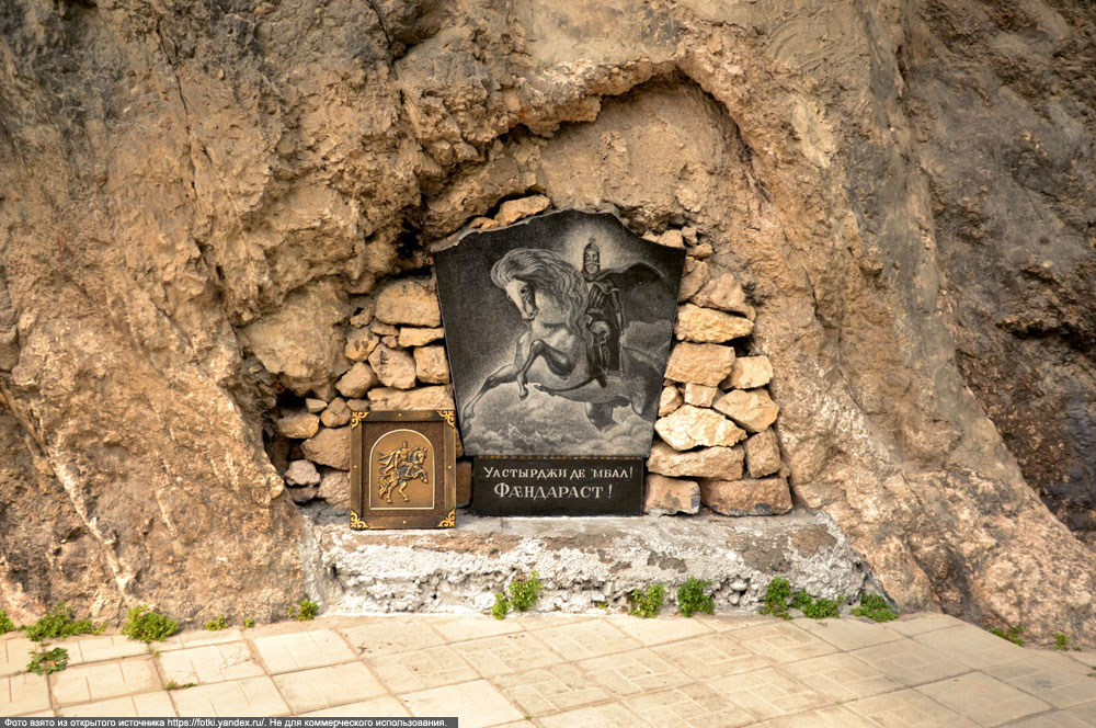 Внизу, под памятником Уастырджи находится небольшая пещера ритуального назначения, в которой размещена чаша для подношений.