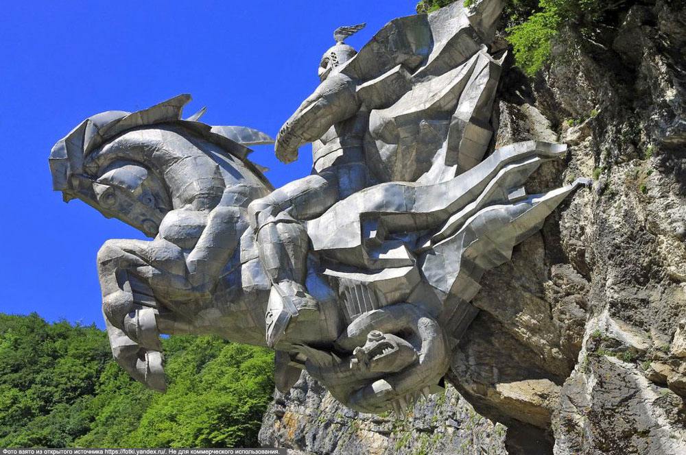 предваряет въезд в Алагирское ущелье. Она символизирует собой хитросплетения верований осетинского народа, в которых гармонично соединилось мусульманство, христианство и даже язычество. Рукотворные достопримечательности Осетии обязательно включают в себя памятник Уастырджи. Этот дзуар (святой) занимает почетное место в здешнем пантеоне, а его христианским прообразом является Георгий Победоносец. Памятник уникален и огромен. Глядя на него, возникает иллюзия, чтоконь стремительно выскакивает из толщи вековой скалы, неся на себе могучего витязя. Уастырджи – покровитель воинов и путешественников, а для женщин имя божества – табу (вместо него используются эвфемизмы).