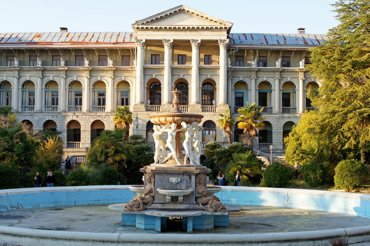 Это одна из знаковых архитектурных достопримечательностей Сочи, наследие СССР. Комплекс из нескольких корпусов и обширная ухоженная в свое время территория находится в запустении с 2010 года. Сегодня стал место притяжения туристов для прогулки и фотосессий. Мы бы не стали включать эту достопримечательность в число обязательных для посещения во время отдыха на курортах Сочи, но если уже все посмотрели и делать совсем нечего, то можете заглянуть и сюда, тем более что добраться до него практически из любого места Большого Сочи не составит труда. Осмотр санатория возможен только снаружи, внутрь корпусов заходить нельзя. На посещение уйдет 10-20 минут. Подробнее про санаторий Орджоникидзе здесь…