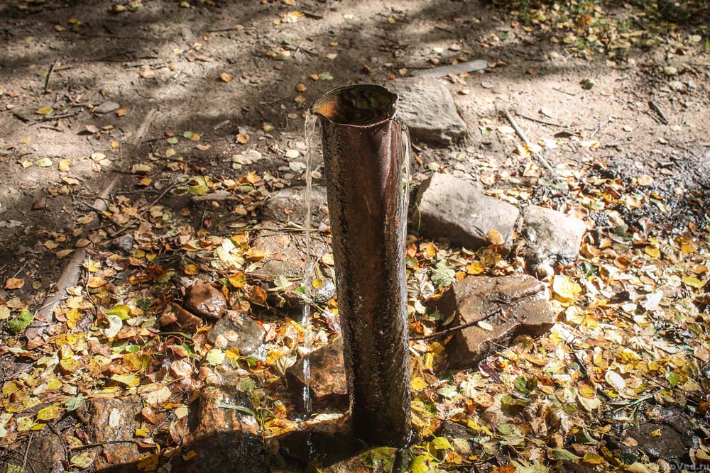Также источник воды (родник) есть в 1 километре к западу по тропе – в урочище Кресты. Через него проходит дорога к главной вершине горы. Впрочем, лучше идти сразу к Чертовым Воротам – по тропе мимо «Трубы» в северном направлении.