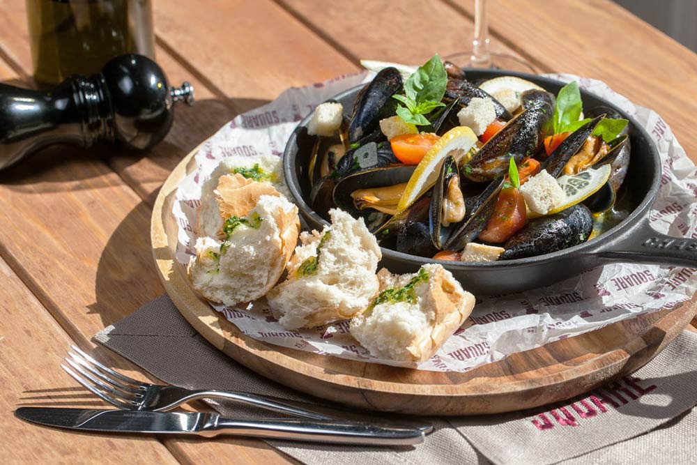Мидии. Этот продукт можно встречается не только в ресторанах, но и на полках магазинов в различной упаковке: вареные, мороженные, в соусе и в масле. Можно привезти в качестве сувенира. Лучше всего готовят на фестивалях и в ресторанах Рыбной деревни.
