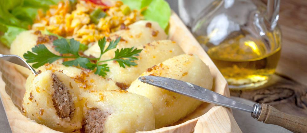 Цеппелины – блюдо не немецкое, а литовское. Ну в общем-то близость к Литве обязывает Калининград к открытию ресторанов соседской кухни. Итак, цеппелины. Это оооочень большие клецки из тертого картофеля с начинкой. А назвали их так благодаря – да, немецким дирижаблям Zeppelin.