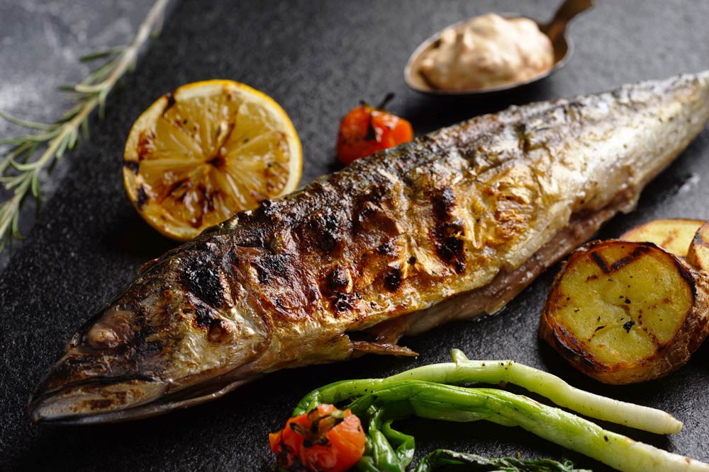 Скумбрия на гриле. Наиболее востребованное рыбное блюдо. Скумбрию на гриле можно найти во многих кафе и ресторанах города, а также на рыбных фестивалях. Рыба, приготовленная таким образом, остается сочной, с тонкой корочкой. Подается с зеленью и овощами.