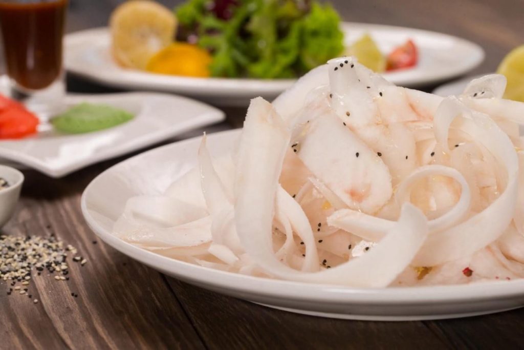 Еще один хит калининградской кухни — пеламида. Эта рыба относится к семейству скумбриевых. Только в Калининграде предоставляется возможность попробовать строганину из этой атлантической рыбы