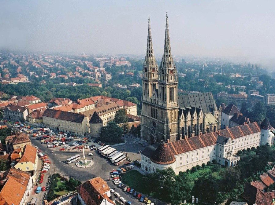 Верхний город в Загребе — средневековый город с старинными достопримечательностями: собор с неоготическим фасадом и двойными шпилями, церковь св. Марка с цветной черепичной крышей, здание парламента и башня 13-го века.