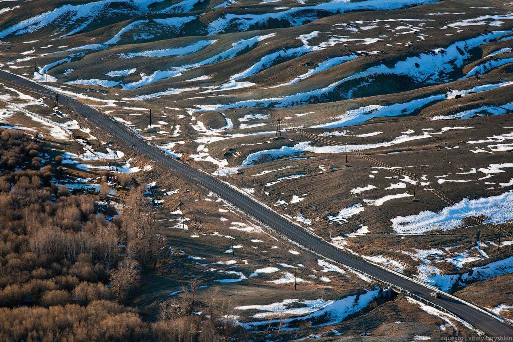 Первые 100 км путешествия нам посчастливилось проехать по казахстанской дороге Усть-Каменогорск — Шемонаиха. Это дорога, на которой водитель не моргая всматривается в дорожное покрытие, пытаясь во время объехать ямы и кучи, насыпанные посреди дороги. Разметки на дороге нет никакой. Вообще. Зато каждые несколько километров ждет патрульная машина ДПС. Эту часть пути мы называем «тренировочная трасса», после нее все российские дороги покрытые асфальтом кажутся песней.