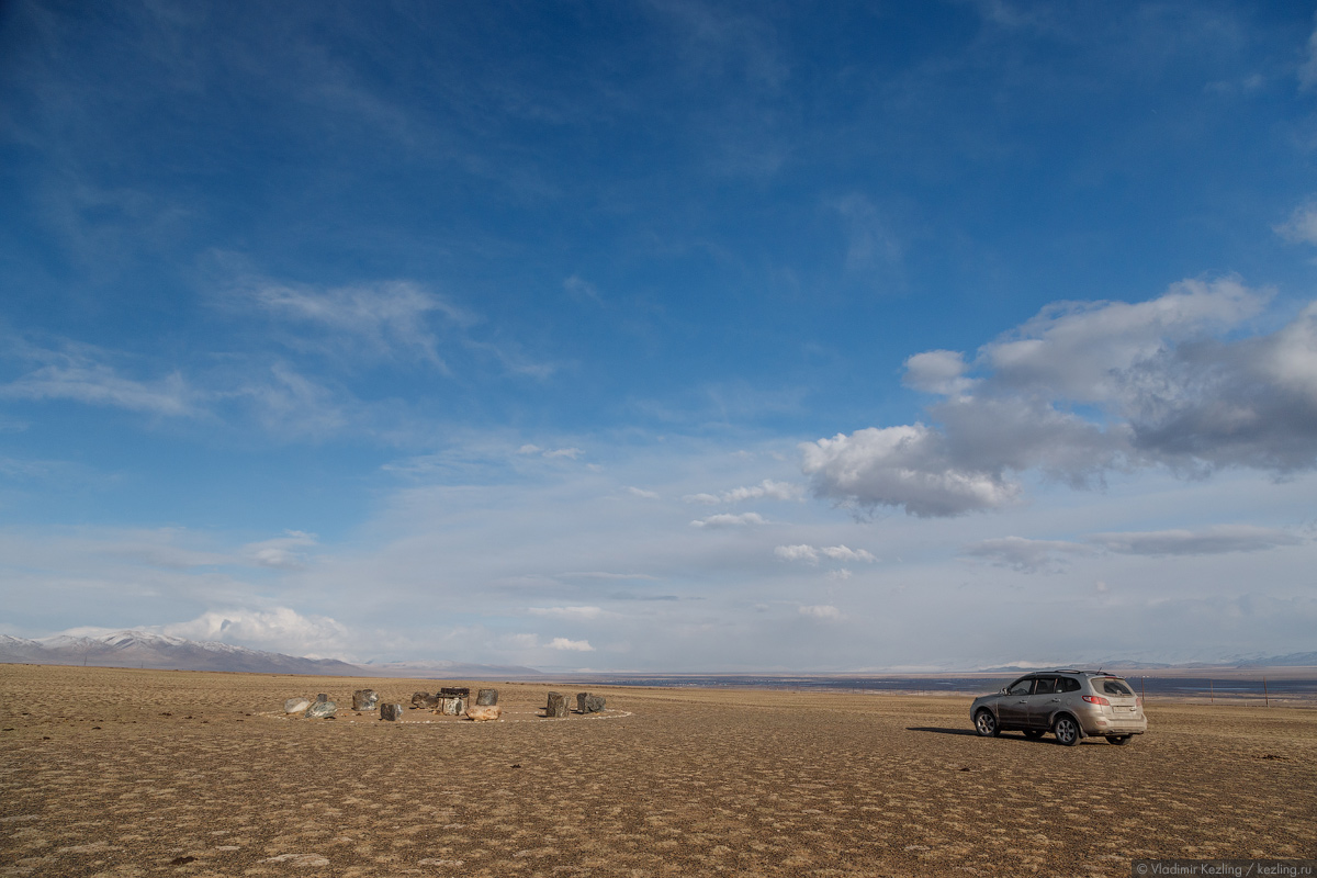 Неподалёку от села Ортолык прямо посреди степи стоит старый алтайский жертвенник.