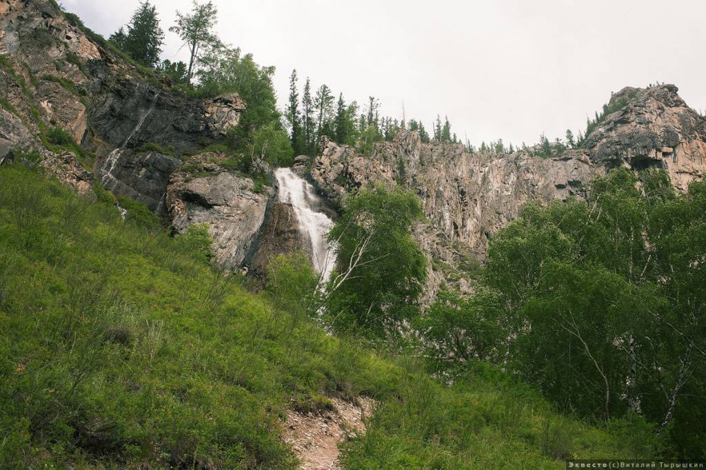 Следующая достопримечательность на нашем пути — Камышлинский водопад. Проход на него только один — через базу Царская охато. Вход на базу стоит 150 рублей. Кроме возможности пройти по мосту можно посмотреть настоящего медведя, пруд с огромными рыбками и посетить аил — жилище коренных алтайцев. В жилище есть уникальная возможность примерить национальные костюмы и посмотреть быт местных жителей.