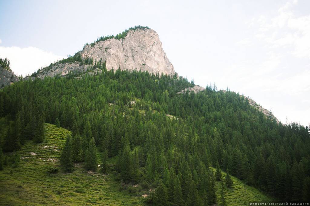 Огромный отвесный утёс на Чуйском тракте. Памятное место. Именно тут путник клал шапку на дорогу — аналог современного светофора.