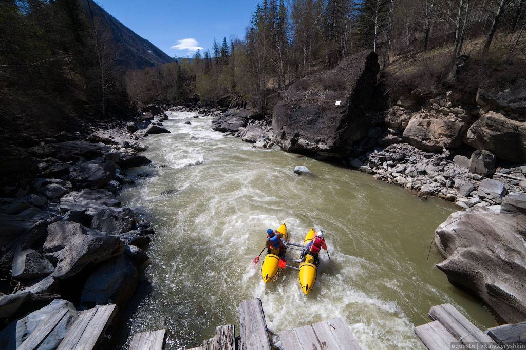 Самые любопытные проезжают по мосту через Чую и спускаются к рекам.
