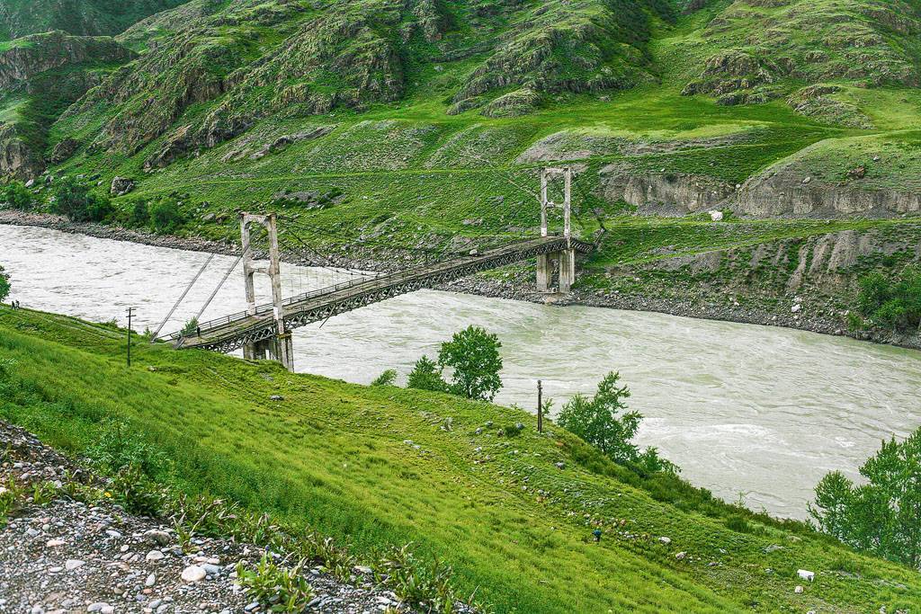 Цаплинский мост — первый в мире подвесной мост подобной конструкции. Строили заключённые. Раньше тут проходил Чуйский тракт, сейчас мост в аварийном состоянии. Ездят по-новому.
