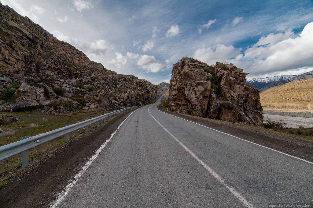 В Белом Боме нужно проехать по мосту и проехать немного выше по течению Чуи. Скоро дорога серпантином пойдет вверх.