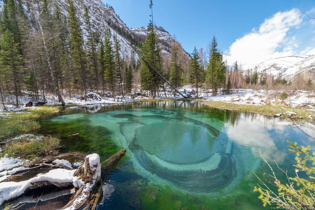 В нескольких километрах за селом Акташ в болотах скрывается Гейзерное озеро. Одна из баз построила дорогу из бревен через болото и пропускает всех желающих за 30 рублей.