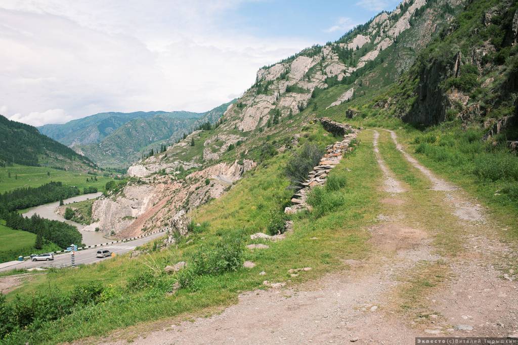 Пройдите вглубь базарчика и увидите старую дорогу. Посмотрите, поблагодарите горных духов и правительство Республики Алтай за новую дорогу. Памятник строителям Чуйского тракта установлен здесь по праву. По старому пути прогуляйтесь пешком, найдете красивые локации для фото.