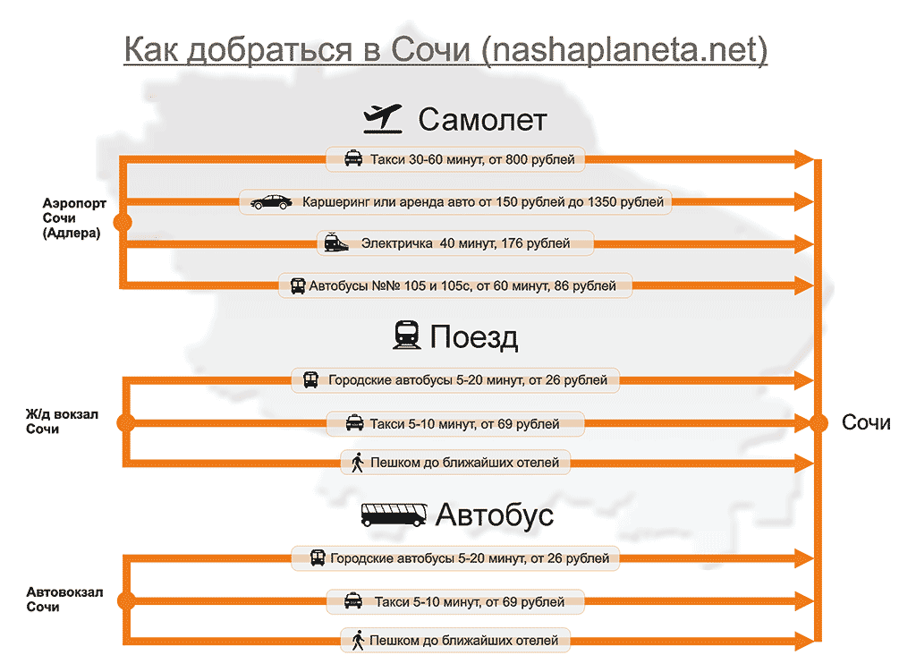 Если все же решили, что будете добираться в Сочи самостоятельно, то вот подробные инструкции про каждый из способов: